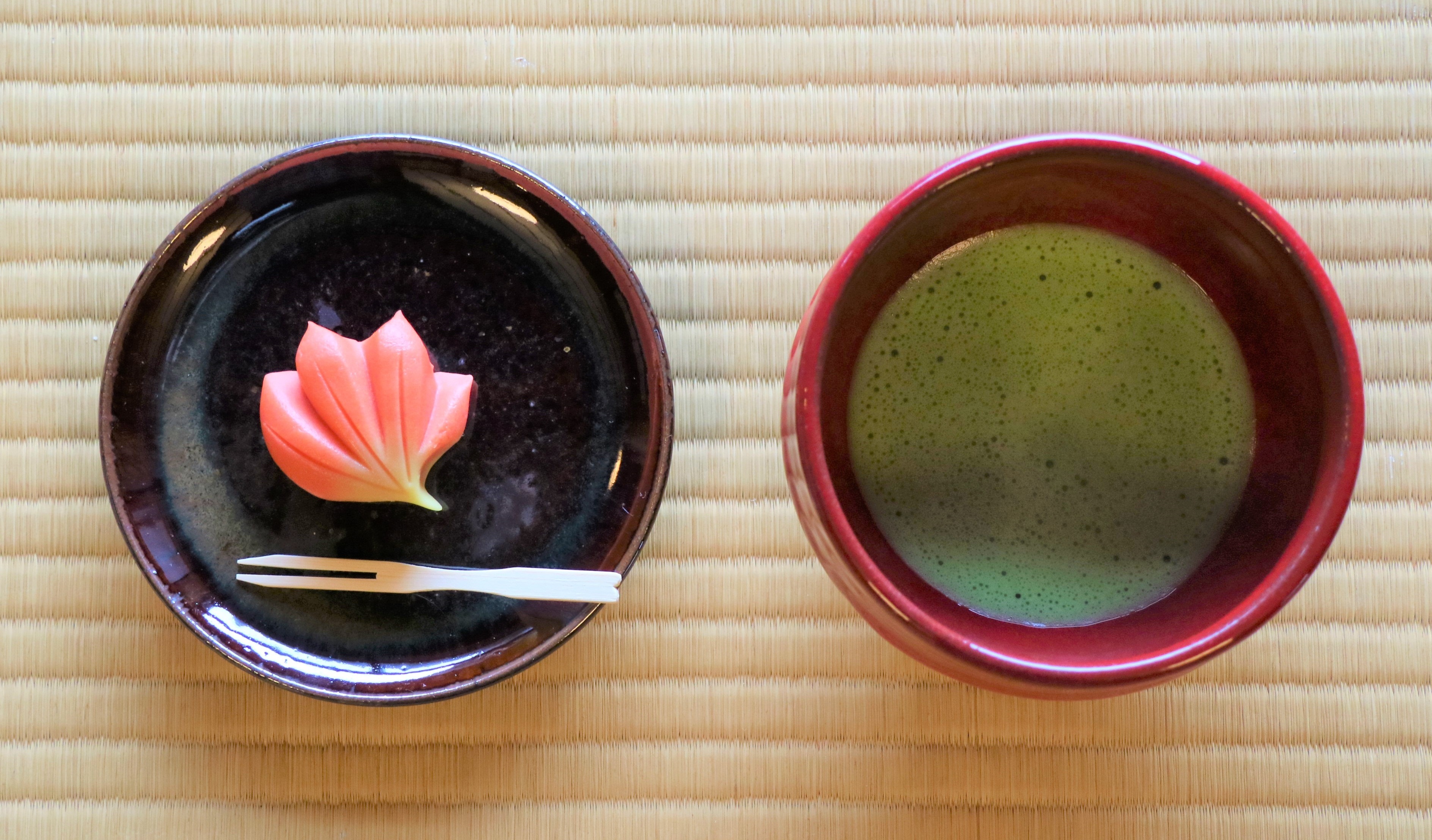 本格的な茶室で先生が点てた抹茶と和菓子を召し上がることができます。