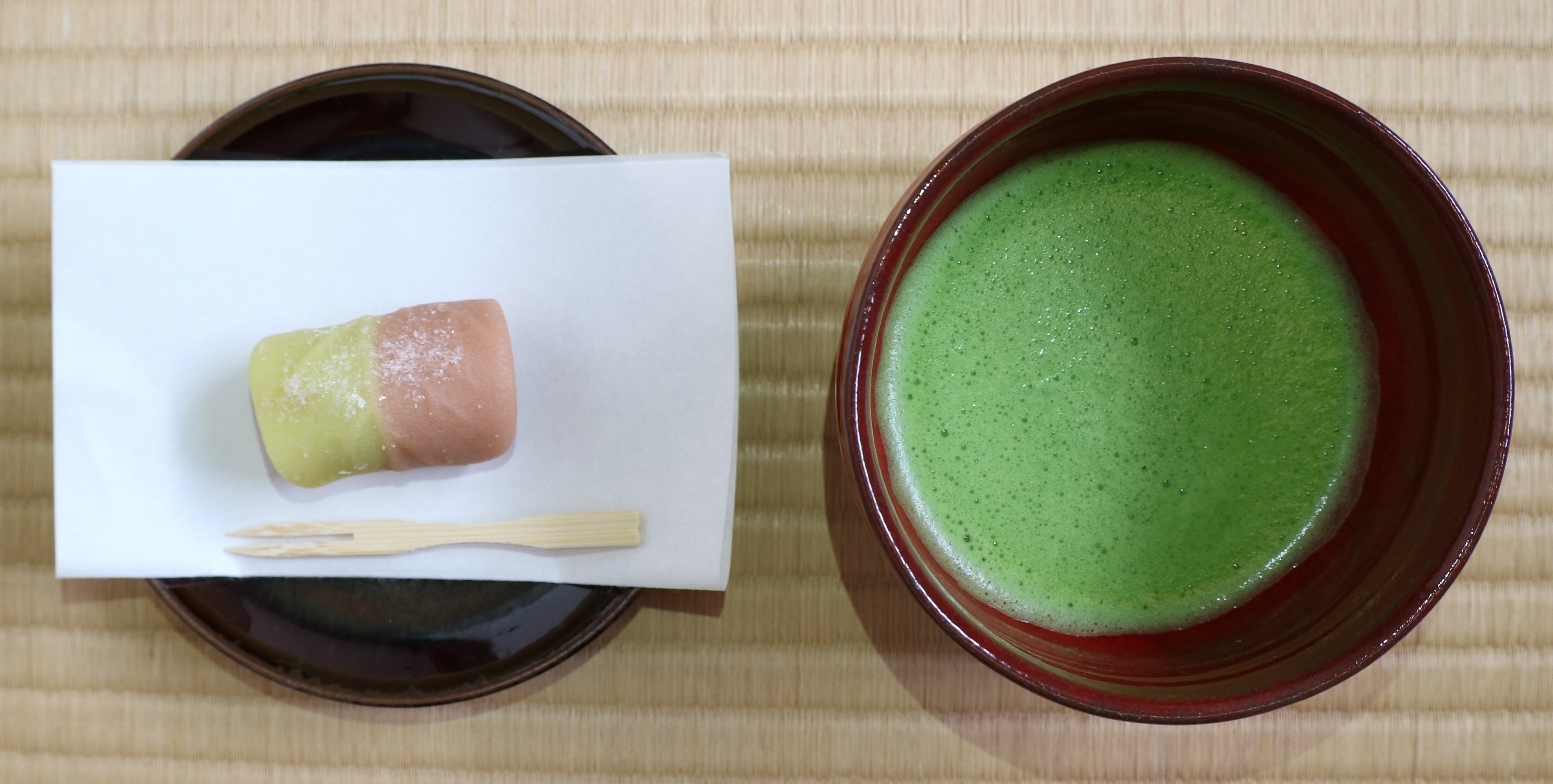 本格的な茶室で先生が点てた抹茶と和菓子を召し上がることができます。